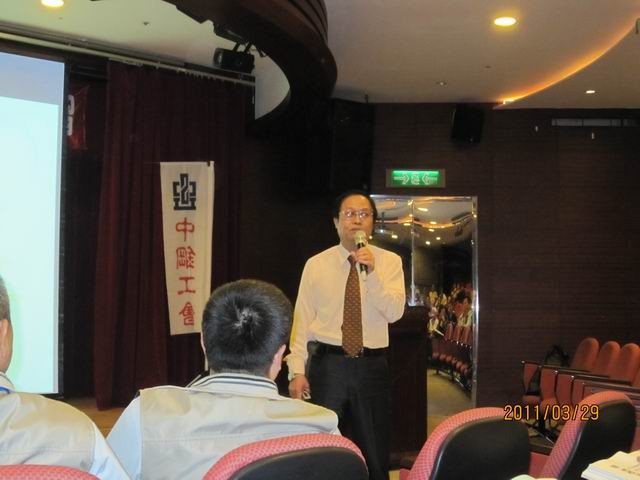 勞委會勞資處楊錫昇副處長講授新工會法課程。